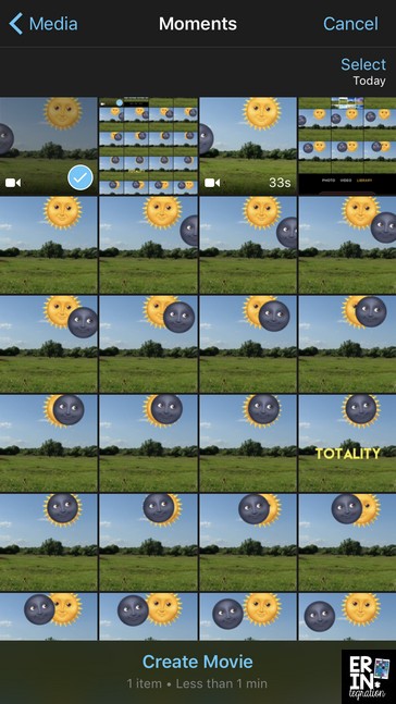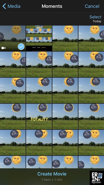 Once students have 25-50 pictures showing the eclipse, they will use either Apple Clips, iMovie or a combo of both to create their video. For clips, insert one picture at a time and hold the red button for 1 second for each picture. Save the video to the camera roll when done.