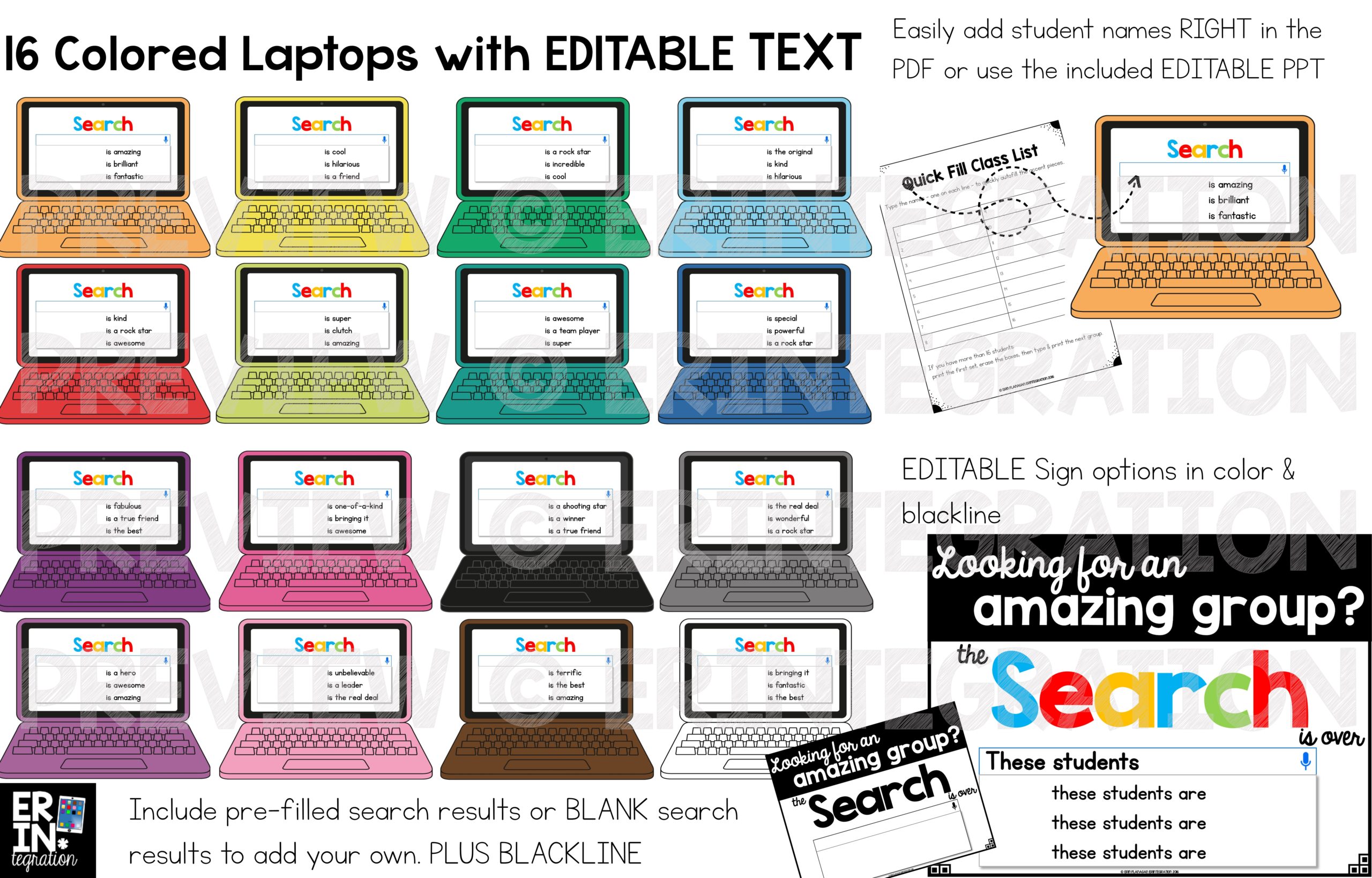 ★ 16 Color Laptop Accents with pre-written search results – editable in both the included editable Adobe .pdf and a PowerPoint file.