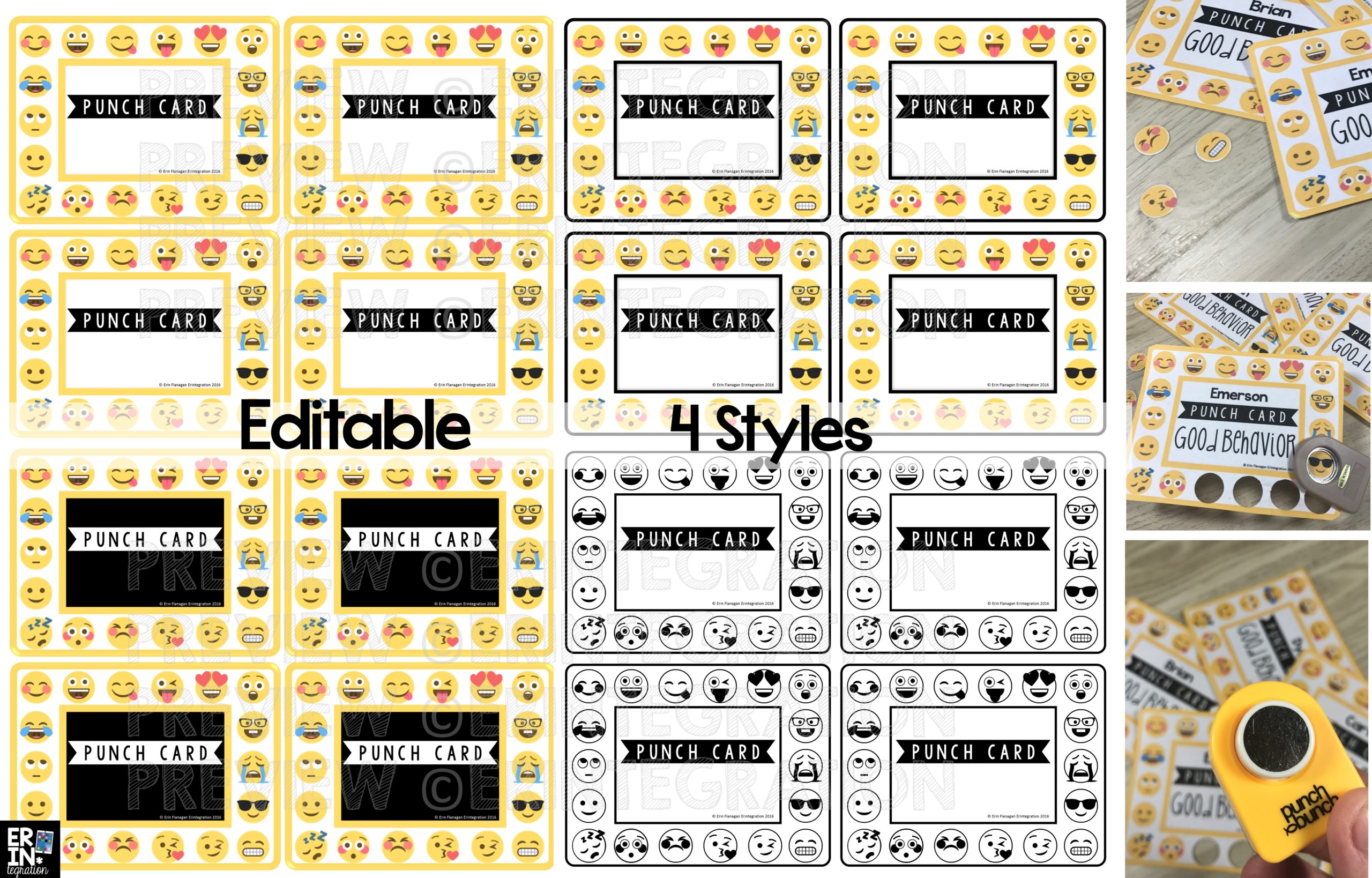 This editable Emoji punch card set comes in 4 styles.